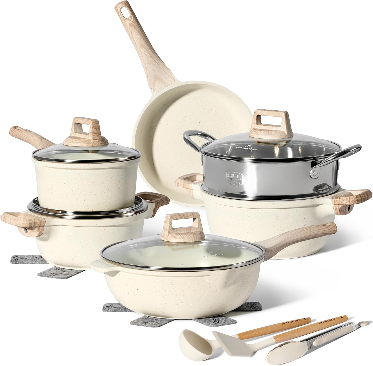 Just Perfecto JL-779: 15 Pieces Granite Cookware Set with Steamer - Biege